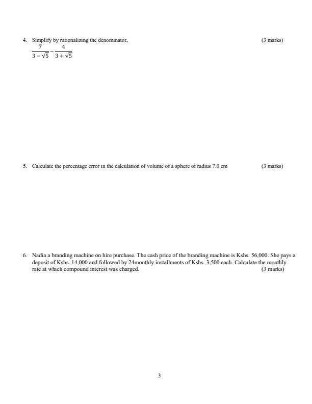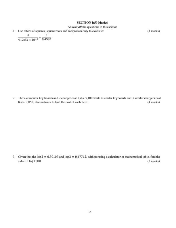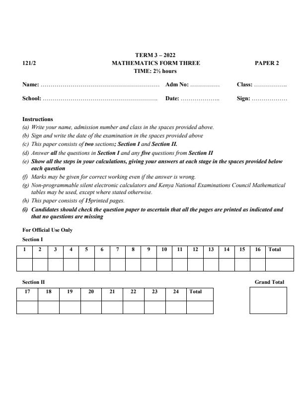 Form 3 Mathematics Paper 2 End of Term 3 Examination 2022
