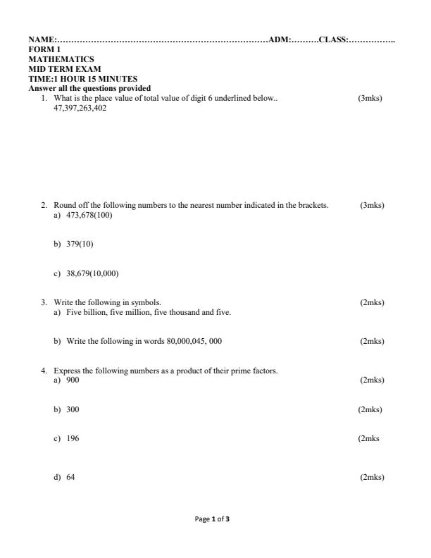 Category: Form 1 Mid Term Exams
