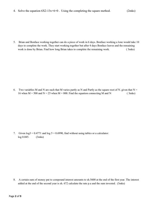 Category: Form 4 Mid Term Exams
