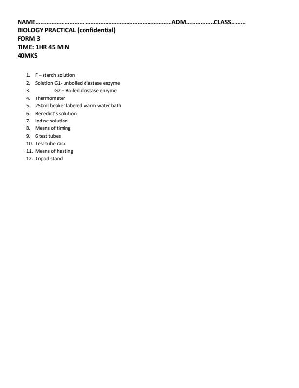 Form 3 Biology Paper 3 Confidential Paper End Term 1 Examination 2023