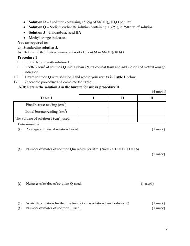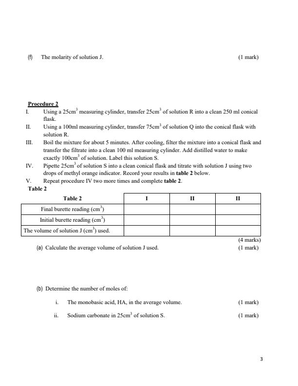 Form 3 Chemistry Paper 3 End of Term 2 Examination 2023