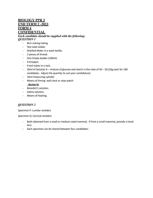 Form 4 Biology Paper 3 Confidential Paper End of Term 2 Examination 2023