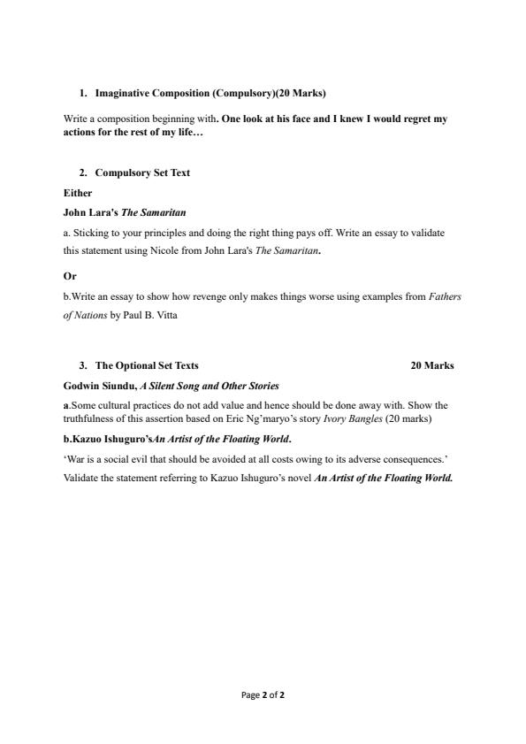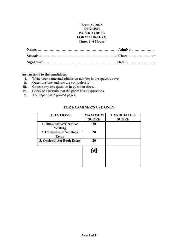 Form 3 English Paper 3 End of Term 2 Examination 2023