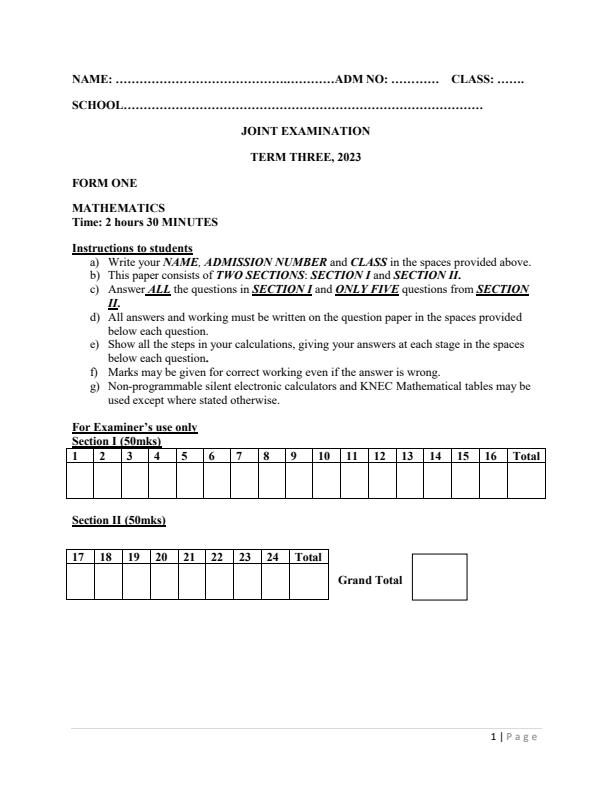 • Preview page Form-1-Mathematics-End-of-Term-3-Examination-2023_1852_0.jpg