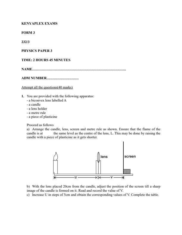 Physics Form 3 Paper 3 Mock Exams Term 2 2019