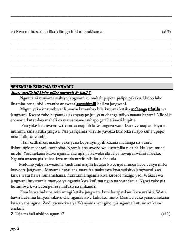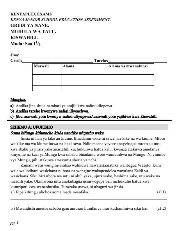 Subject: Kiswahili