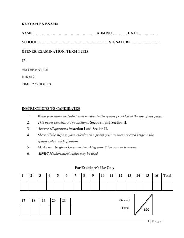 • Preview page Form-2-Mathematics-Term-1-Opener-Exam-2025_3560_1.jpg