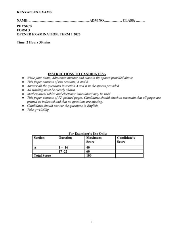 • Preview page Form-3-Physics-Term-1-Opener-Exam-2025_3573_1.jpg