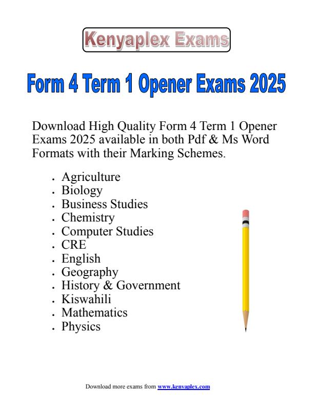 Prepare for Form 4 Term 1 Opener Exams 2025 with this comprehensive set that includes exam papers and marking schemes. Perfect for teachers and students looking for effective study resources.
