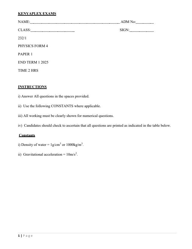 Category: Form 4 End Term 1 Exams