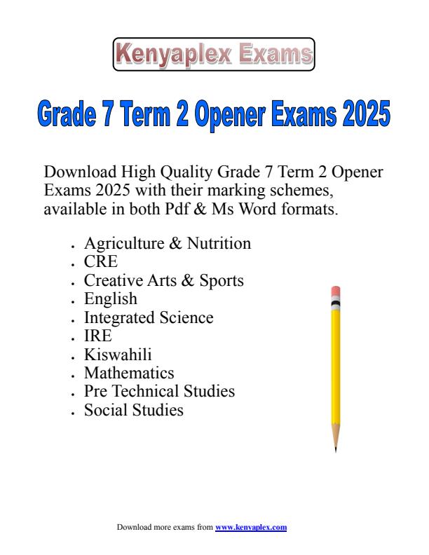 Prepare for Grade 7 Term 2 Opener Exams 2025 with this comprehensive set including exam papers and marking schemes. Perfect for teachers and students to ensure thorough understanding and preparation. Get ahead with this essential resources for academic success.