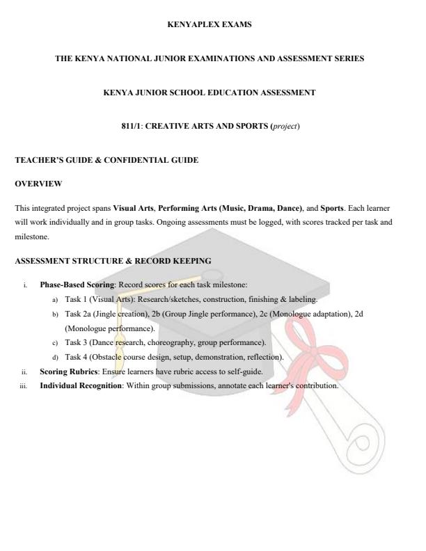 Grade 8 Creative Arts and Sports Paper 1 Confidential Paper End of Term 2 Exam 2025