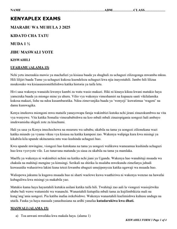 • Preview page Form-3-Kiswahili-Term-3-Opener-Exam-2025_4597_0.jpg