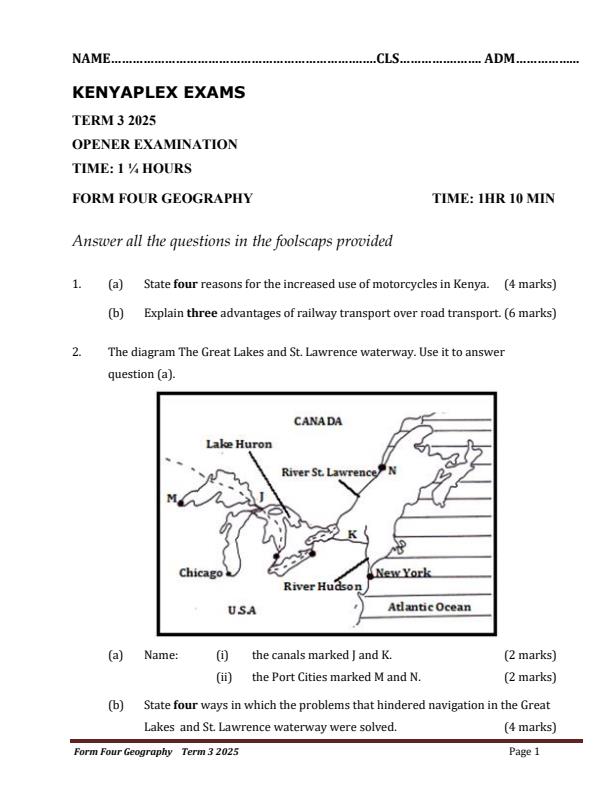 • Preview page Form-4-Geography-Term-3-Opener-Exam-2025_4607_0.jpg