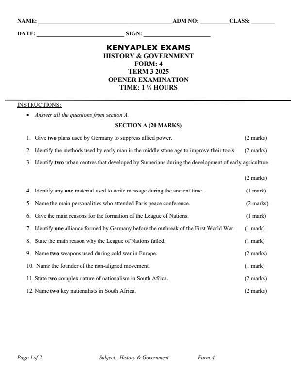 • Preview page Form-4-History-and-Government-Term-3-Opener-Exam-2025_4608_0.jpg