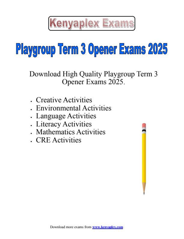 Prepare your little learners for success with the Playgroup Term 3 Opener Exams 2025 set. Ideal for teachers and students, this exam will help assess and enhance their skills. Get them ready for the future today!