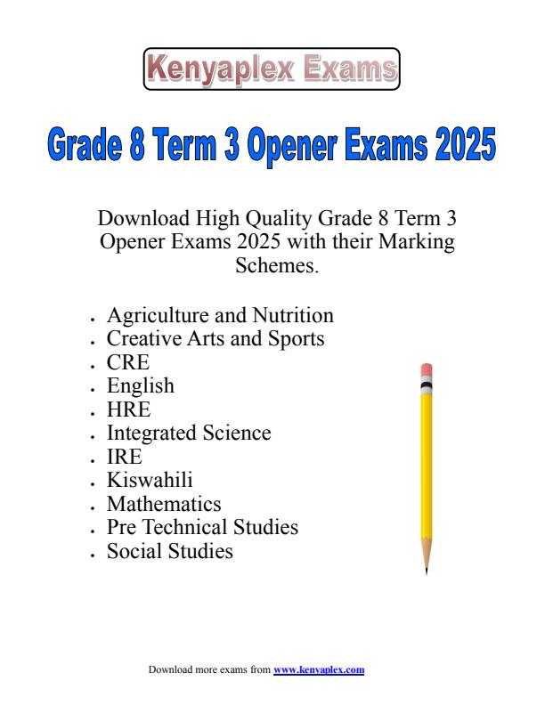 Grade 8 Term 3 Opener Exams 2025 - Set