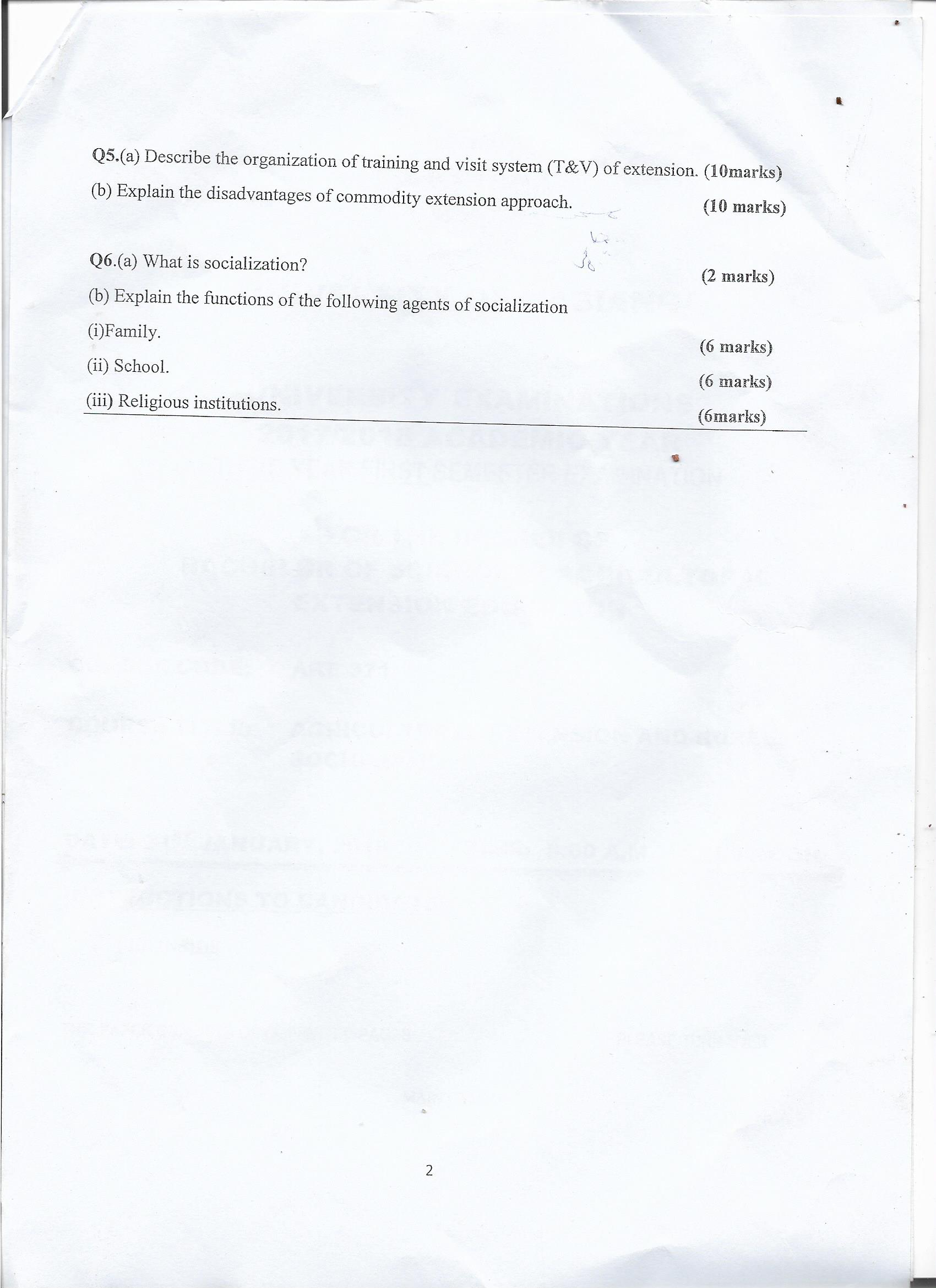Are 371:Agricultural Extension And Rural Sociology Question Paper