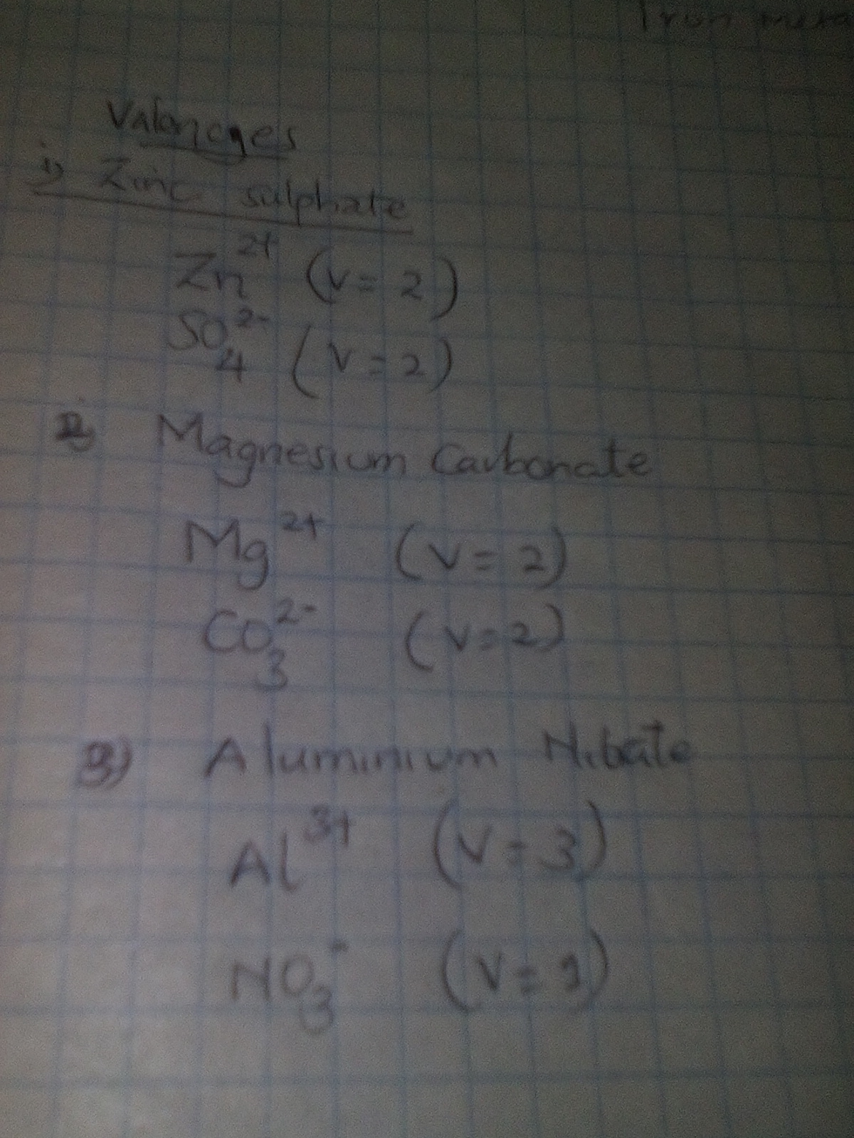 1.Zinc sulphate.......Zn2+ V=2, SO42- V=2