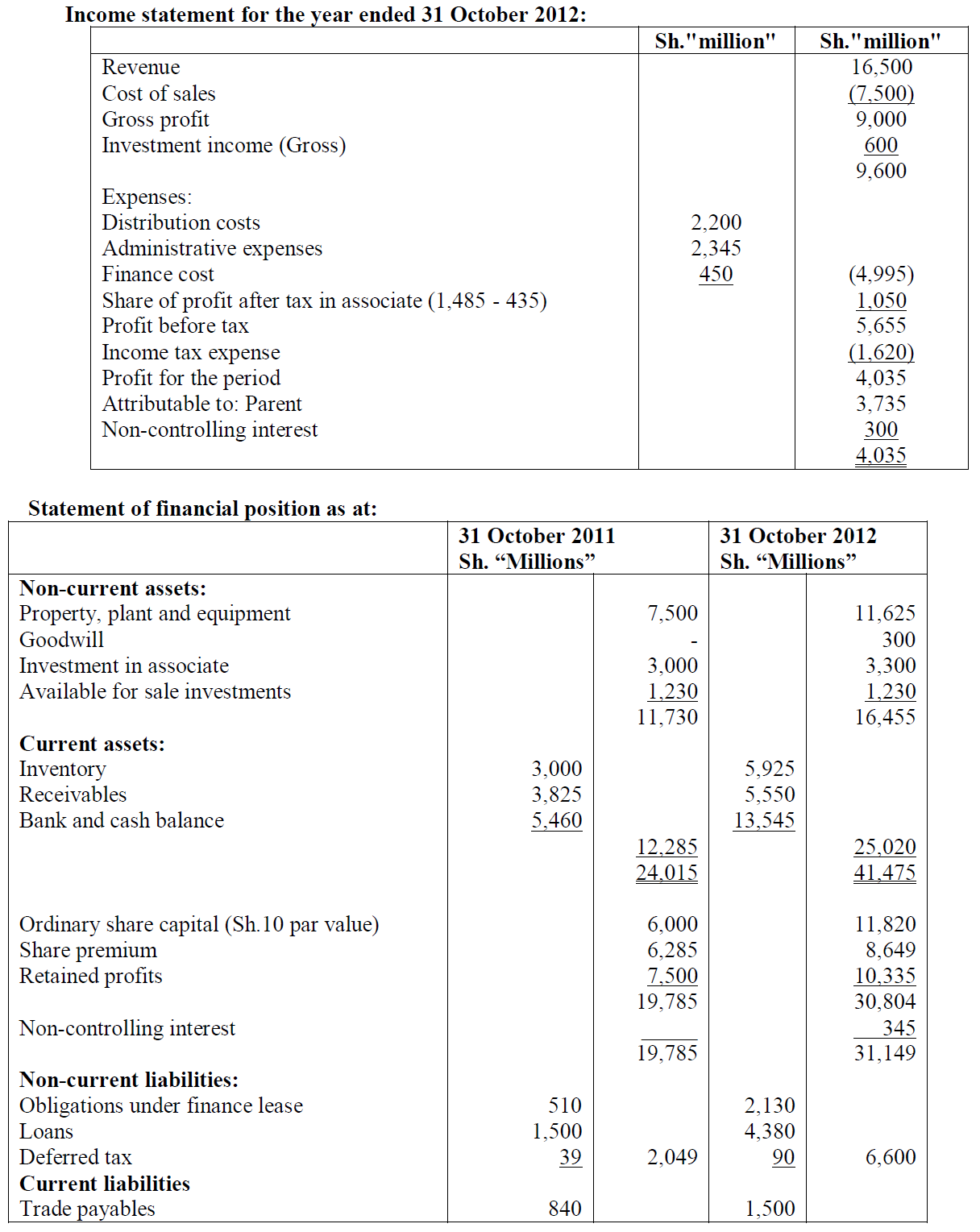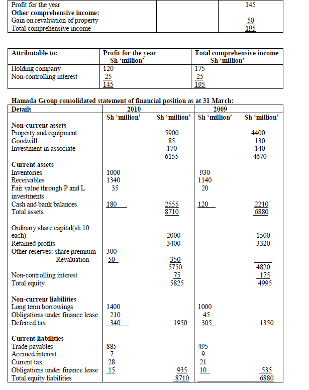The following are the group income statement and group statement or financial position of Soma group of companies, for the financial year ended 31 October...