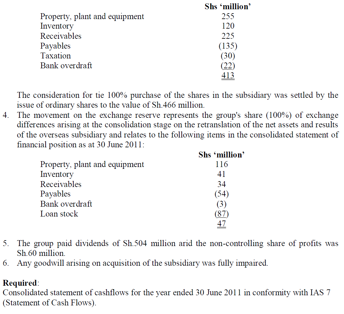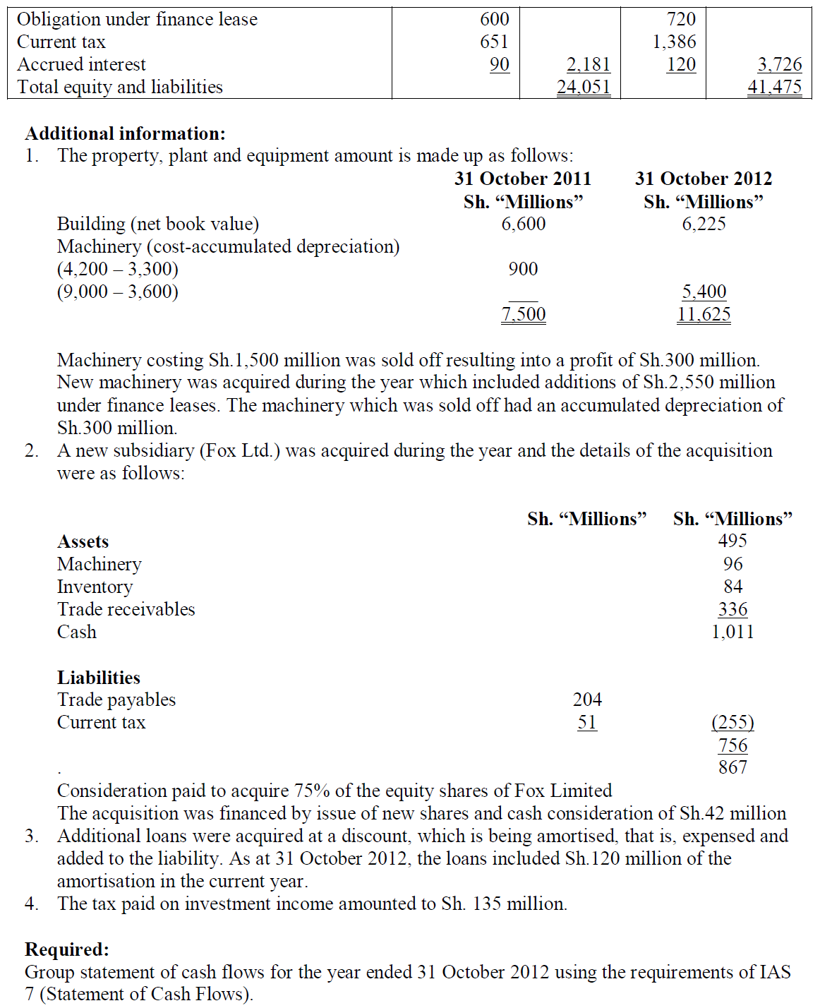 2. The company constructed its own plant at a total cost of Sh.240 million. The plant was brought into use on 1 October 2012 but its cost had not been capitalized. Instead, its cost had been included in the cost of sales. Plant is depreciated at 12.5% per annum using the reducing balance method (time apportioned) and charged to the cost of sales.