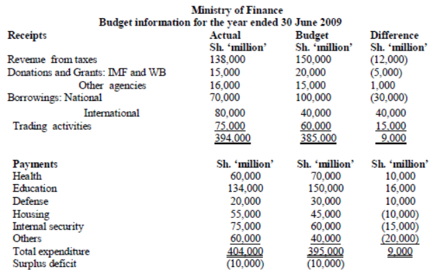 The following summary of receipts and payments was extracted from the records of the Ministry of Finance for the fiscal year ended 30 June 2010.