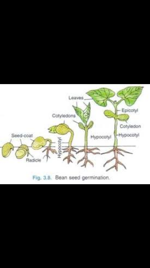 A stalk (hypocotyl) sets the seed and cotyledons firmly into the soil.