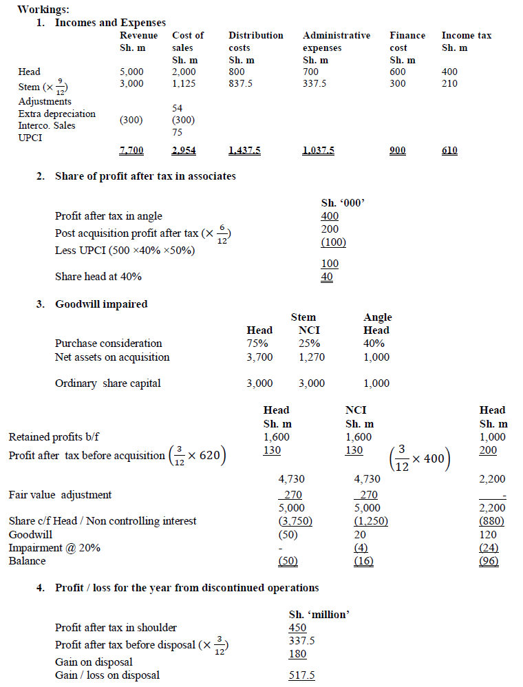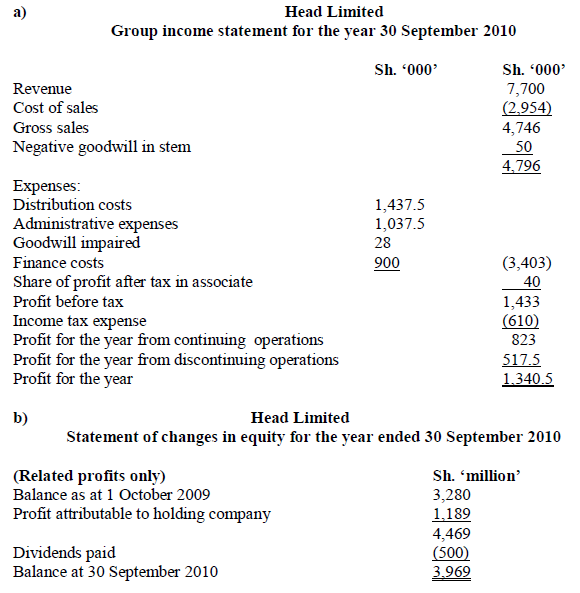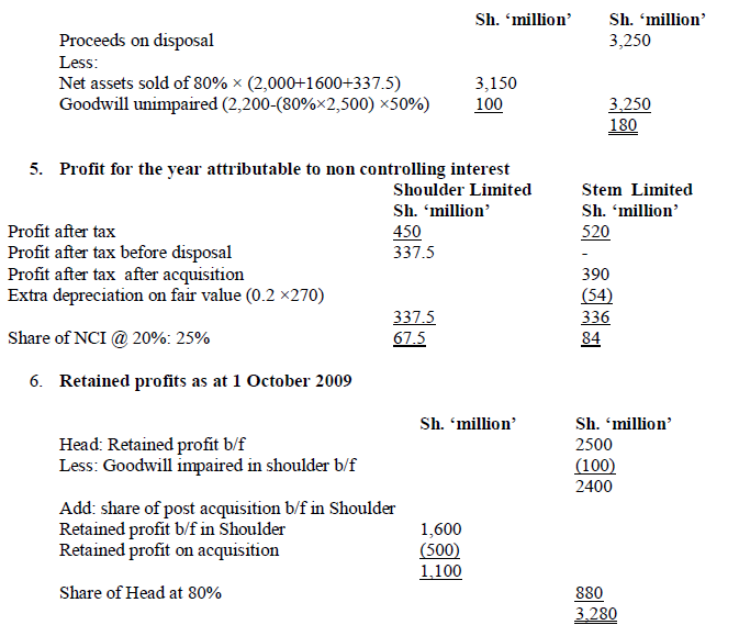 1. Hunga Limited had acquired its shareholding in Shika Limited for Sh.2,400 million when the retained profits of Shika Limited amounted to Sh. 1,500 million. There was no fair value adjustment at the time of this acquisition.