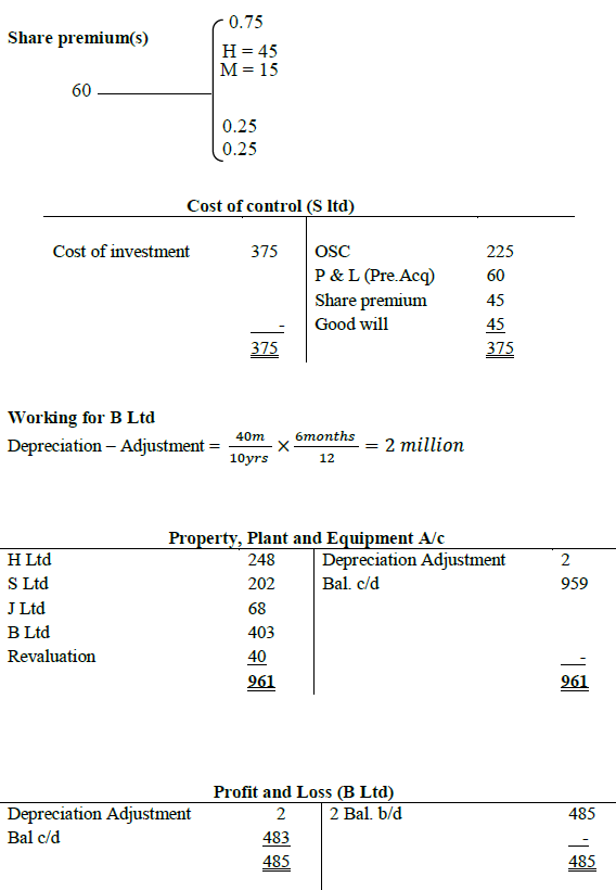 4. During the year, Host Limited sold an item of plant to Supa Limited at a selling price of Sh.240 million reporting a profit of 20% on cost. The group charges depreciation at the rate of 20% on cost and this is included as part of the cost of sales.