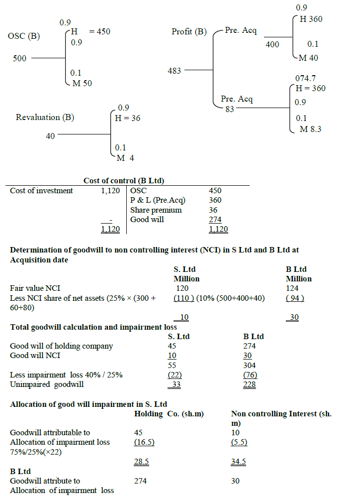 1. Host Limited acquired 90% of the ordinary share capital of Supa Limited on 1 January 2005 when the retained profit, of Supa Limited were Sh. 1,425 million. Subsequently, Supa Limited acquired 80% of the ordinary share capital of Sport Limited on 1 January 2007 when the retained profits of Sport Limited were Sh.950 million.