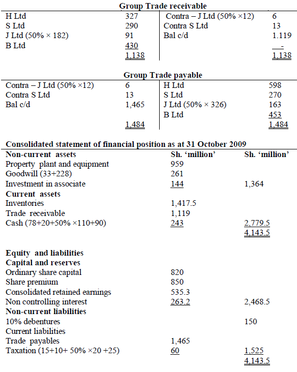1. Head Limited had acquired it s shareholding in Shoulder Limited at a cost of Sh 2200 million on 1 October 2007 when the retained earnings of Shoulder Limited were Sh.500 million. The ordinary share capital of Shoulder Limited was Sh. 2,000 million and there were no other reserves. The fair value of the non-controlling interest in Shoulder Limited on the same date was Sh.550 million.
