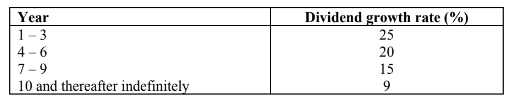Kawaida Ltd. is currently engaged in an expansion programme. Consequently, the company has been retaining all its earnings to finance the expansion programme. The company’s management expects to resume the payment of dividends at the end of 3 years with a dividend payment of sh. 1 per share. The dividends will grow at an annual rate of 50% in years 4 and 5. Thereafter, the dividends will grow at a constant rate of 8% indefinitely. The required rate of return on the company’s stock is 15%.