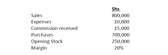Closing stock was valued at sh. 22,000