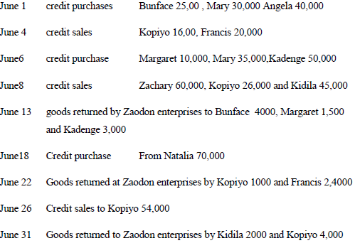 The following transaction took place in Zaodon enterprises in the month of June 2015.