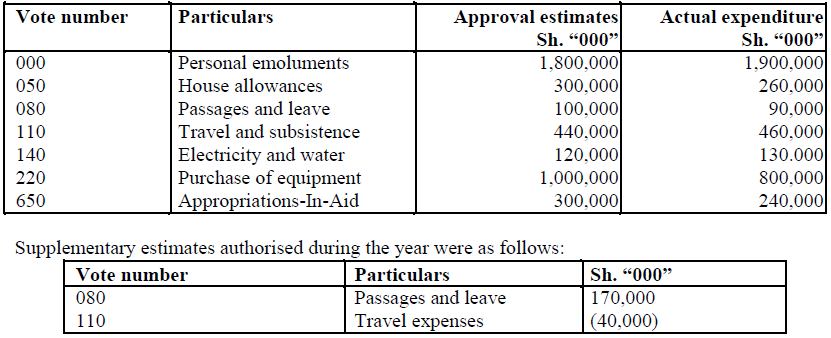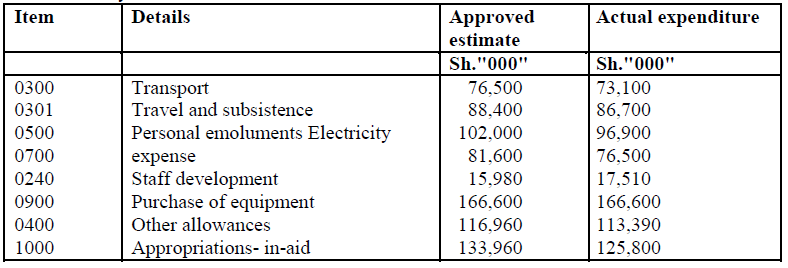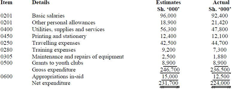 The following were the estimates and actual expenditure of Barani Ministry of Youth and Sports for