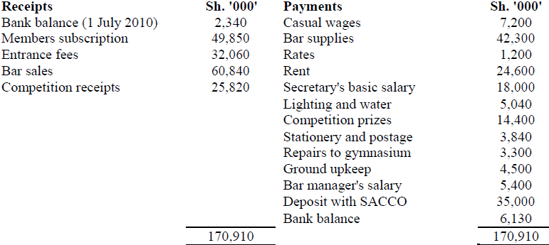 The following is the summary of the cashbook of Mbedodo Football Club for the year ended 30 June