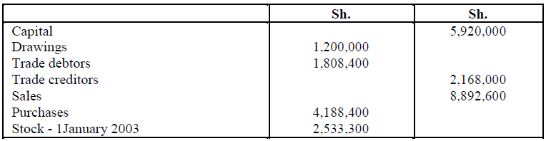 statement was prepared which showed a gross profit and a net profit of Sh. 1,985,000 and