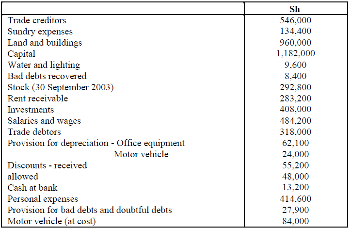 7. A bad debt of Sh 22,500 is yet to be written off.