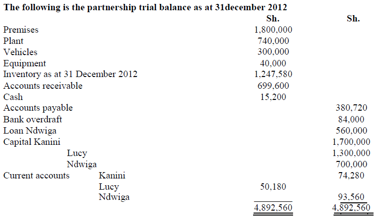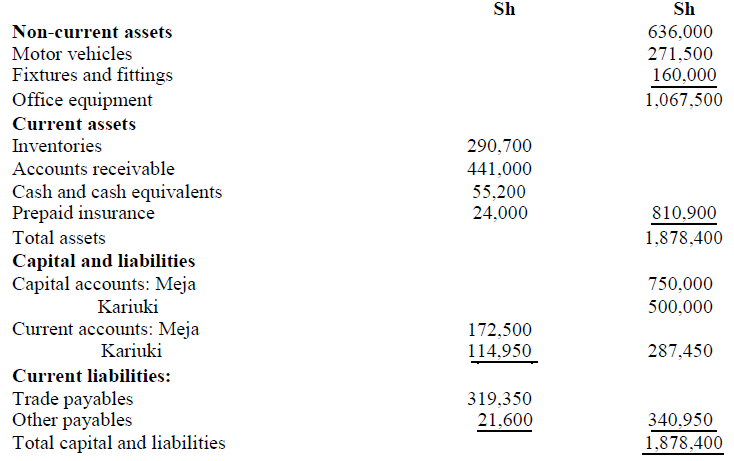Meja and Kariuki have been trading as partners sharing profits and losses in the ratio of their fixed