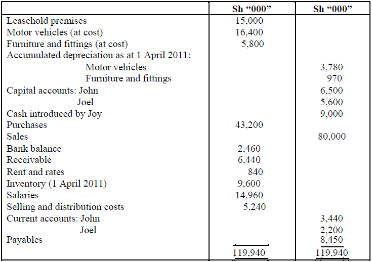 The following trial balance was extracted from the partnership's books of account as at 31 March