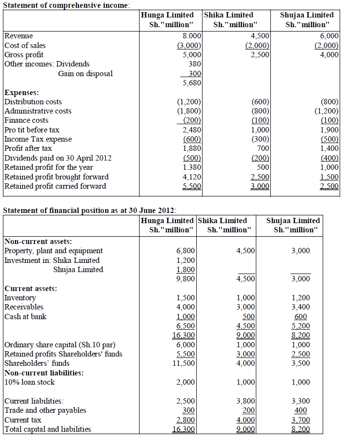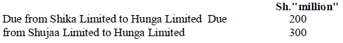 3. Between 1 January 2012 and 30 June 2012. Hunga Limited sold to Shujaa Limited goods worth Sh.500 million reporting, a profit of Sh. 100 million. Half of the goods were still in the inventory of Shujaa Limited as at 30 June 2012.