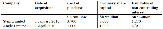 On the date of its acquisition, Stem Limited had an item of plant that was Sh.270 million below its fair value. Plant is depreciated at 20% per annum with a full year’s charge in the year of purchase or revaluation.