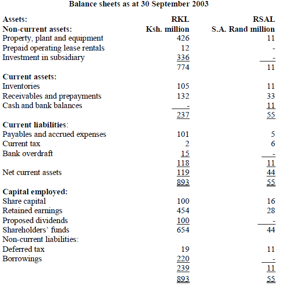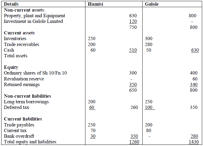 1. Hunga Limited had acquired its shareholding in Shika Limited for Sh.2,400 million when the retained profits of Shika Limited amounted to Sh. 1,500 million. There was no fair value adjustment at the time of this acquisition.
