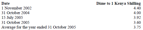 b) Consolidated balance sheet as at 31 October 2005 in Kenya Shillings.