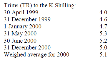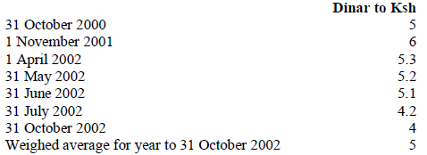 6. A loan of Ksh.50 million was raised by Ugeni Ltd. from Umma Ltd on 31 May 2000. The loan is interest free and is repayable in 2009. The loan is included in the cost investment in Ugeni Ltd. An amount of TR 65 million had been paid to Umma Ltd on 31 December 2000 in part settlement on the loan. The amount had not been received by Umma Ltd. and had not been included in its financial statements as at 31 December 2000.