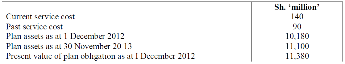 Wabunge Ltd. operates a defined benefits plan for its employees. Both employees and the employer contribute to the plan. Details of the defined benefits plan for the year ended 30 November 2013 were as follows: