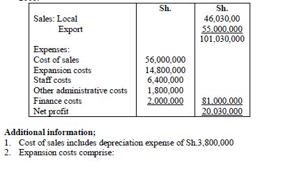 - Profit before tax sh. 4,000,000