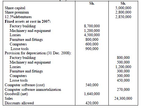 However, Ann Mwajuma did not maintain complete accounting records for the year ended 31 December 2008. She has therefore requested you to assist her and has provided you with the following information: