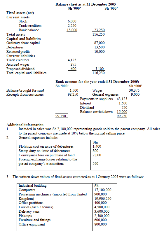 You have been approached by Mr. Kenneth Kamau, seeking your assistance in the computation of his tax liability for the year ended 31 December 2001. He has provided you with the following information: