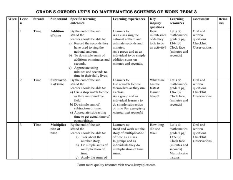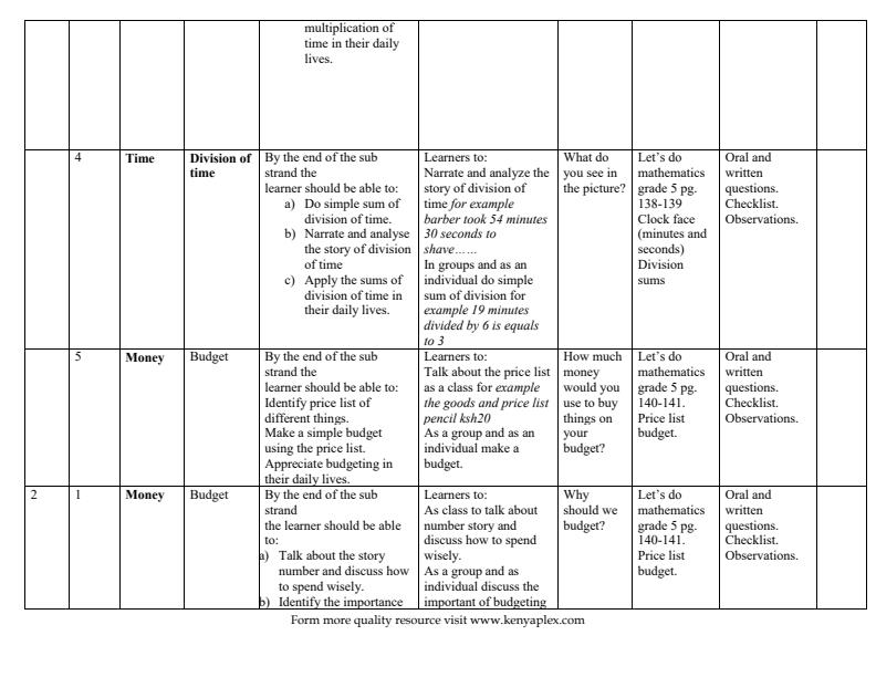 Content Category: grade 5 schemes of work